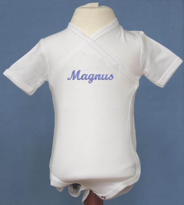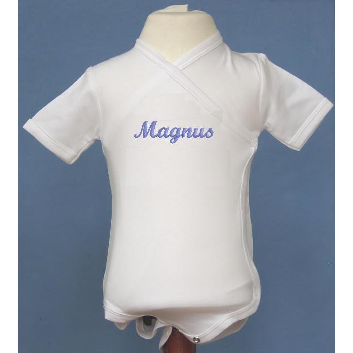 Kortærmet hvid baby body i blød bomuldsjersey.